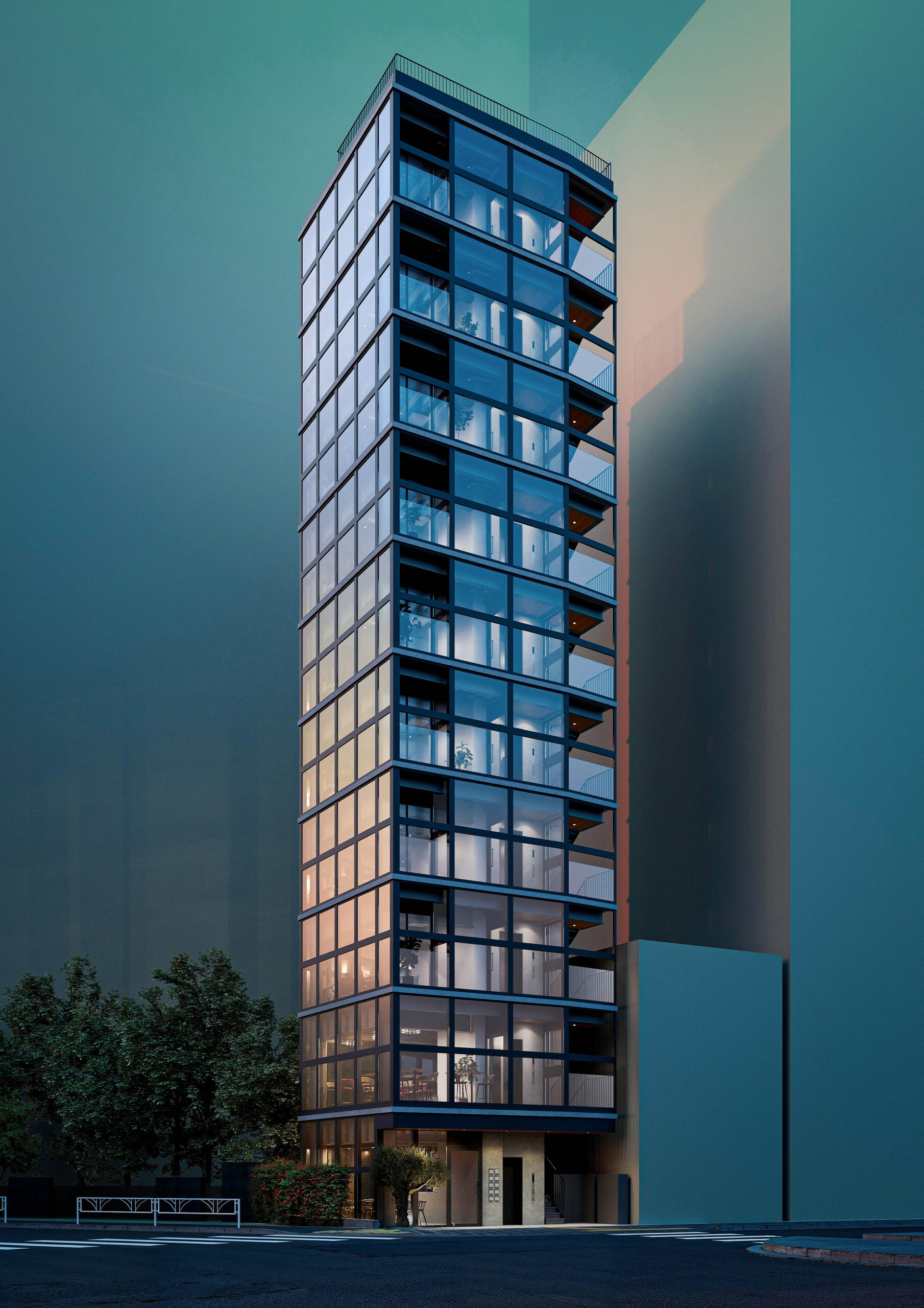 店舗兼オフィスビル「千駄ヶ谷開発プロジェクト」のCGパースです。